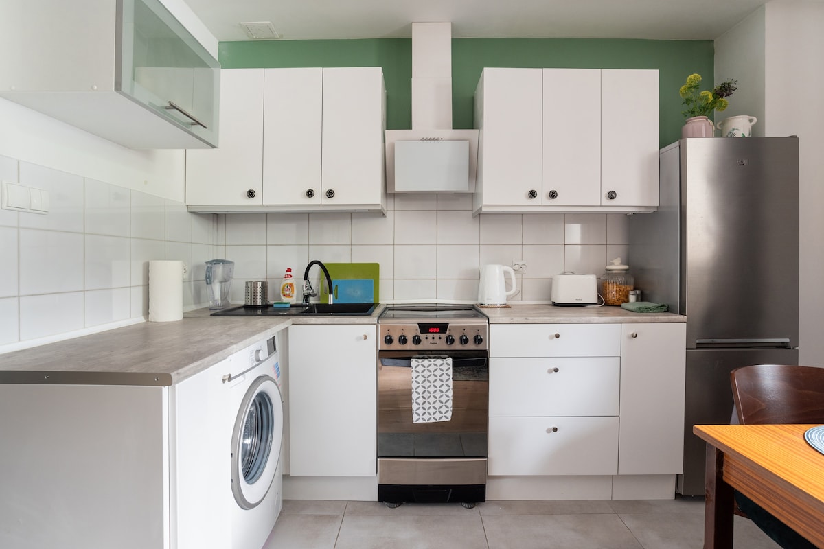 Un gran lugar, un apartamento acogedor con aire acondicionado en el barrio de Ursynów de Varsovia. Sala de estar conectada con la cocina, cocina equipada con todas las comodidades. Dormitorio separado, baño con bañera y ducha, amplio balcón. TV de 55 pulgadas Zona tranquila, silenciosa, bien comunicada y segura. A 3 minutos a pie de la estación de metro Imielin, a 4 minutos a pie del Hospital Urológico Especializado MAZOVIA. A poca distancia del Instituto Nacional de Oncología y el aeropuerto de Okęcie.