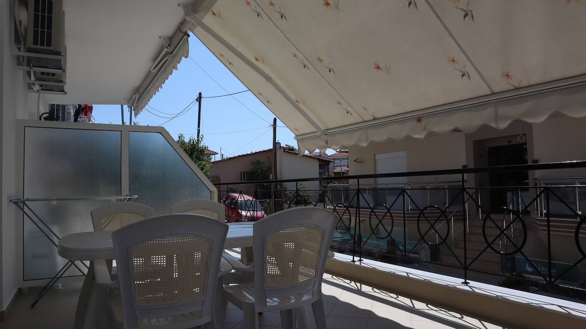 Welcome to "Find Yourself 2", just a 3-minute drive from the beautiful Sykia beach in Sithonia. Perfect for 5 (+1) guests aged 15+, this spacious apartment includes 2 bedrooms, a fully equipped kitchen (no-oven), modern shower, washing machine, smart TVs (32" & 42"), air conditioning, and fast Starlink internet. Enjoy outdoor meals under the shaded kiosk or use the private BBQ in the yard. Includes an extra bed and storage room. (Notes: Tap water is not drinkable / Events may allowed, ask!)