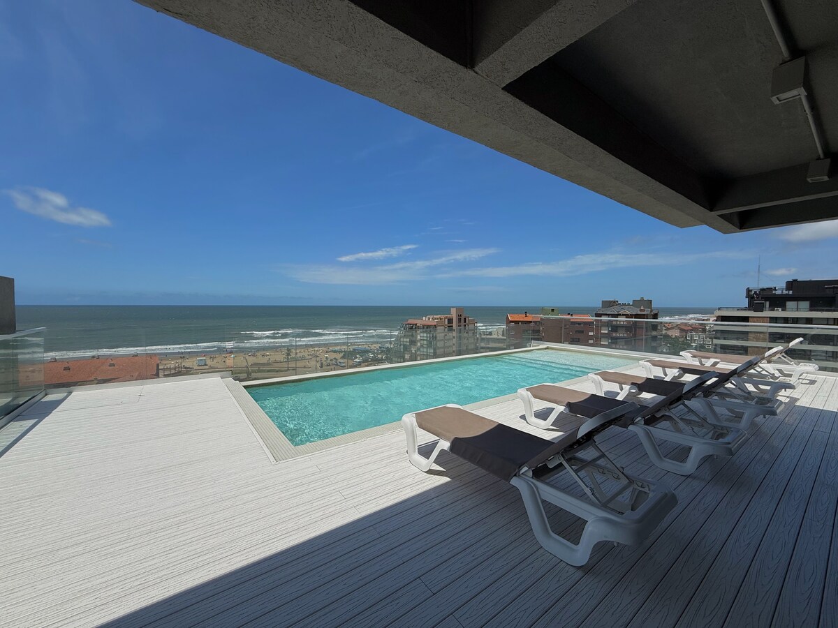 New and modern apartment with an incredible ocean view. One block from the sea and the heart of Pinamar downtown. The complex has an outdoor pool, heated indoor pool, gym, yacuzzi, sauna, cinema room, table tennis. You can also enjoy a private yacuzzi overlooking the sea. There is a laundry in the building.