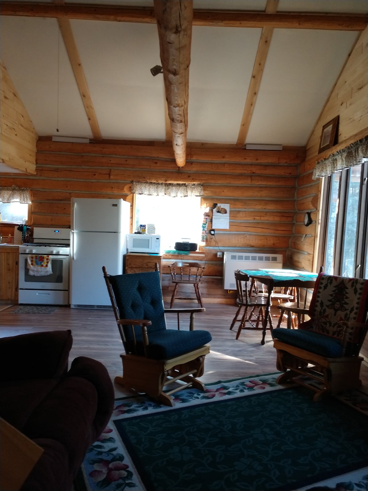 Nuestra cabaña se encuentra en el corazón del bosque nacional Nicolet en 37,5 acres. Limita con dos lados creando un entorno hermoso y muy tranquilo. Una vez dentro, te sentirás cálido y cómodo mientras puedes ver toda la belleza que la naturaleza tiene para ofrecer a través de todas las ventanas con vistas a la propiedad. Hay mucho espacio en la cocina para preparar una comida o relajarse en la terraza mientras se asa a la parrilla. Relájate junto al fuego del campamento o refréscate en el estanque. Senderos para motos de nieve y todoterreno por la parte trasera de la propiedad.