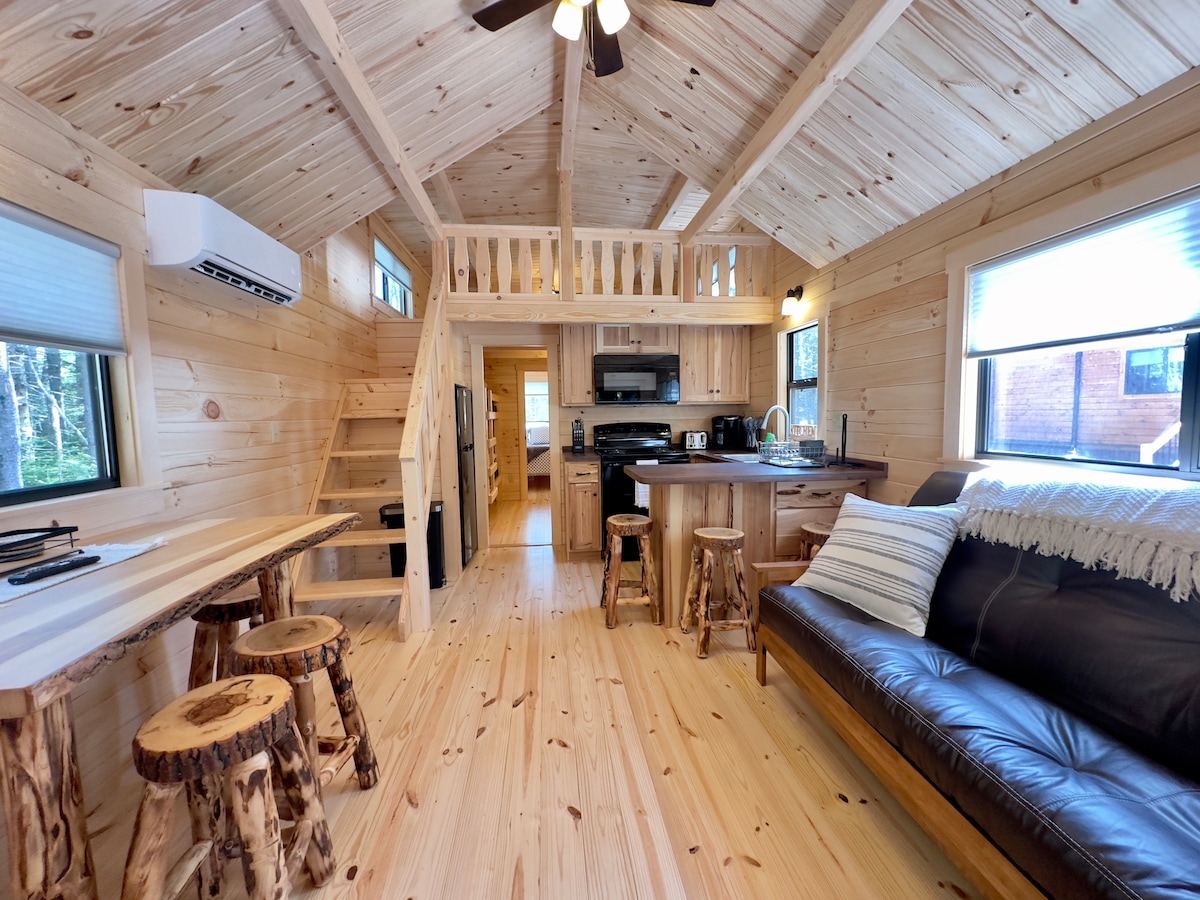 Esta hermosa propiedad se encuentra en Pinkham Bay, en la costa de Maine, y tiene capacidad para 4 personas dentro de la cabaña con 1 dormitorio, un loft y un sofá cama tamaño queen. Hay un área de relajación cerrada adicional con vistas a la chimenea y la bahía para sentarse y disfrutar del increíble paisaje. Ubicado en 2,5 acres frente al mar con fácil acceso al borde del agua para lanzar los kayaks. La cabaña incluye todas las comodidades, incluido el plano de planta abierto y el calentador de propano Rinnai y la bomba de calor. El brasero está listo para horas de diversión.