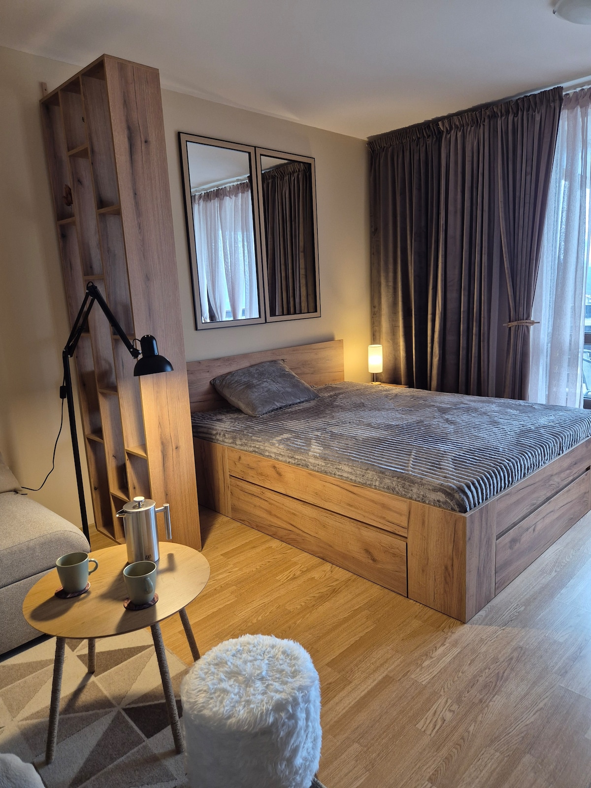 Bienvenido a nuestro nuevo departamento de lujo en Bansko, ubicado en medio de la impresionante cordillera de Pirin. Sumérgete en un refugio único inspirado en una cueva y adornado con piedras rústicas y cálidos detalles de madera. La cama doble promete la máxima comodidad, mientras que las luces LED ocultas crean un ambiente mágico. Experimenta una mezcla perfecta de naturaleza y opulencia, con vistas panorámicas a la estación de esquí de Bansko. Tu escapada a la montaña te espera, donde cada detalle susurra tranquilidad y elegancia.