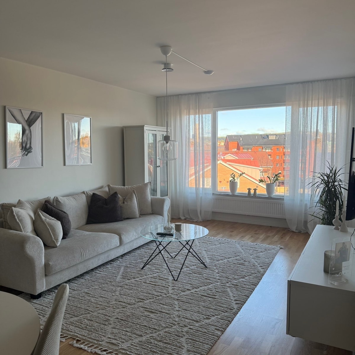 30+ DAY STAY? CONTACT US FOR A QUOTE. Nestled on the 9th floor in central Piteå, our modern 2019 apartment offers a spectacular harbor view. Enjoy your morning coffee on the balcony overlooking the Piteälven, then unwind in the cozy living space after a day's work. Steps away from shopping, dining, and nightlife, plus a shared courtyard with BBQ for relaxation. Perfect for business travelers seeking comfort and convenience in a picturesque setting.