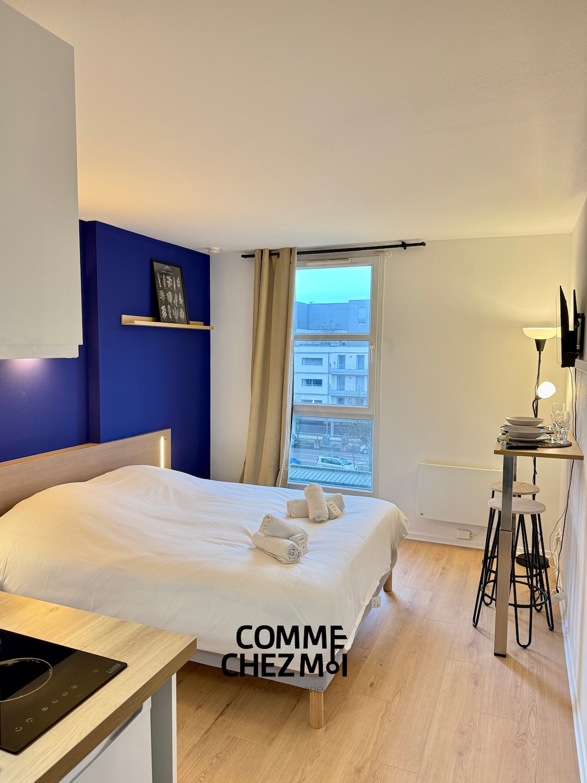 Appartement tout équipé au sein de la résidence City Résidence à Nancy (gestion indépendante Comme Chez Moi Conciergerie). - Lit double 180, cuisine équipée, TV, Wi-Fi. - Parking/garage inclus, un vrai plus en zone payante. - Résidence sécurisée avec accueil 24h/24, laverie et espace petit-déjeuner. - Tram à 300 m : centre-ville en 5 min. - Quartier calme, proche restaurants, commerces, cinéma et centre d’affaires.
