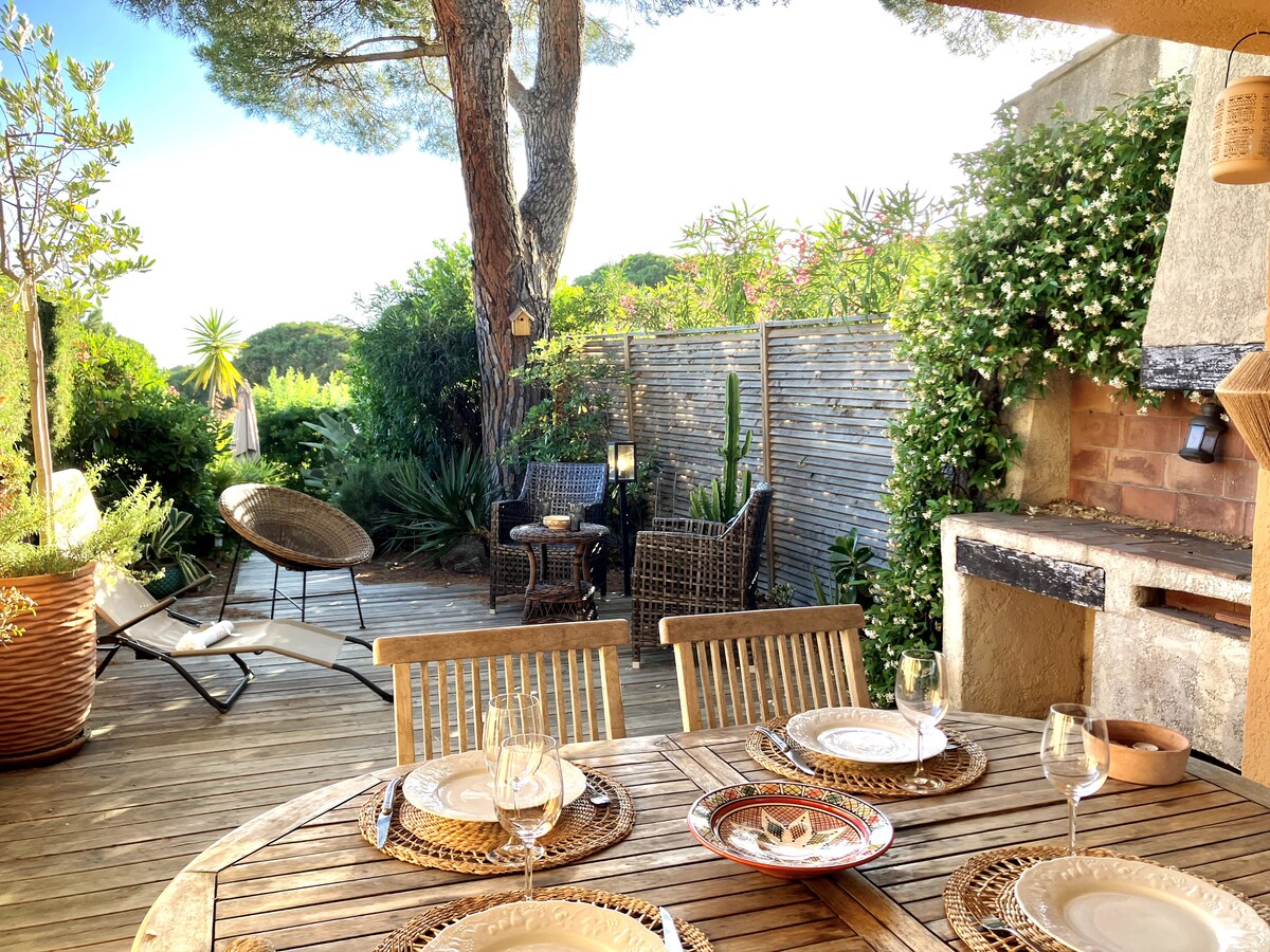 En el dominio de Mas de Gigaro. La playa de Gigaro se encuentra en la parte baja de la residencia. A 50 m por debajo del Club House🛜/piscina comunitaria de pago 10€/semana / 4 pistas de tenis 40€/semana. Terreno de petanca . Pequeña piscina privada /segura /días pares. El auténtico encanto provenzal, elegante y acogedor, acurrucado en su diván para admirar este lugar mágico. El mar con sus vistas a las islas. Un sueño.. A 20 minutos de St Tropez .