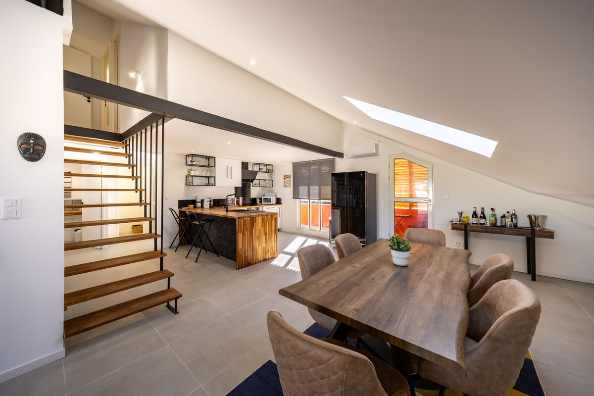 SOLÉIA est un duplex de prestige avec terrasse, niché au cœur de l’Ermitage-les-Bains. À 50 m du lagon, un chemin de sable vous mène en 2 min à la plage de l’Hermitage, l’une des plus belles de l’île. Très lumineux, SOLÉIA offre : • 3 ch. climatisées avec lits doubles • Séjour élégant avec cuisine US équipée • 2 SDB avec douche et 2 WC • Parking privé en résidence sécurisée • Wifi, Netflix, bouquet TV, Canal+ 👉 Confort et raffinement à deux pas du lagon. 👉 Toutes commodités à proximité.