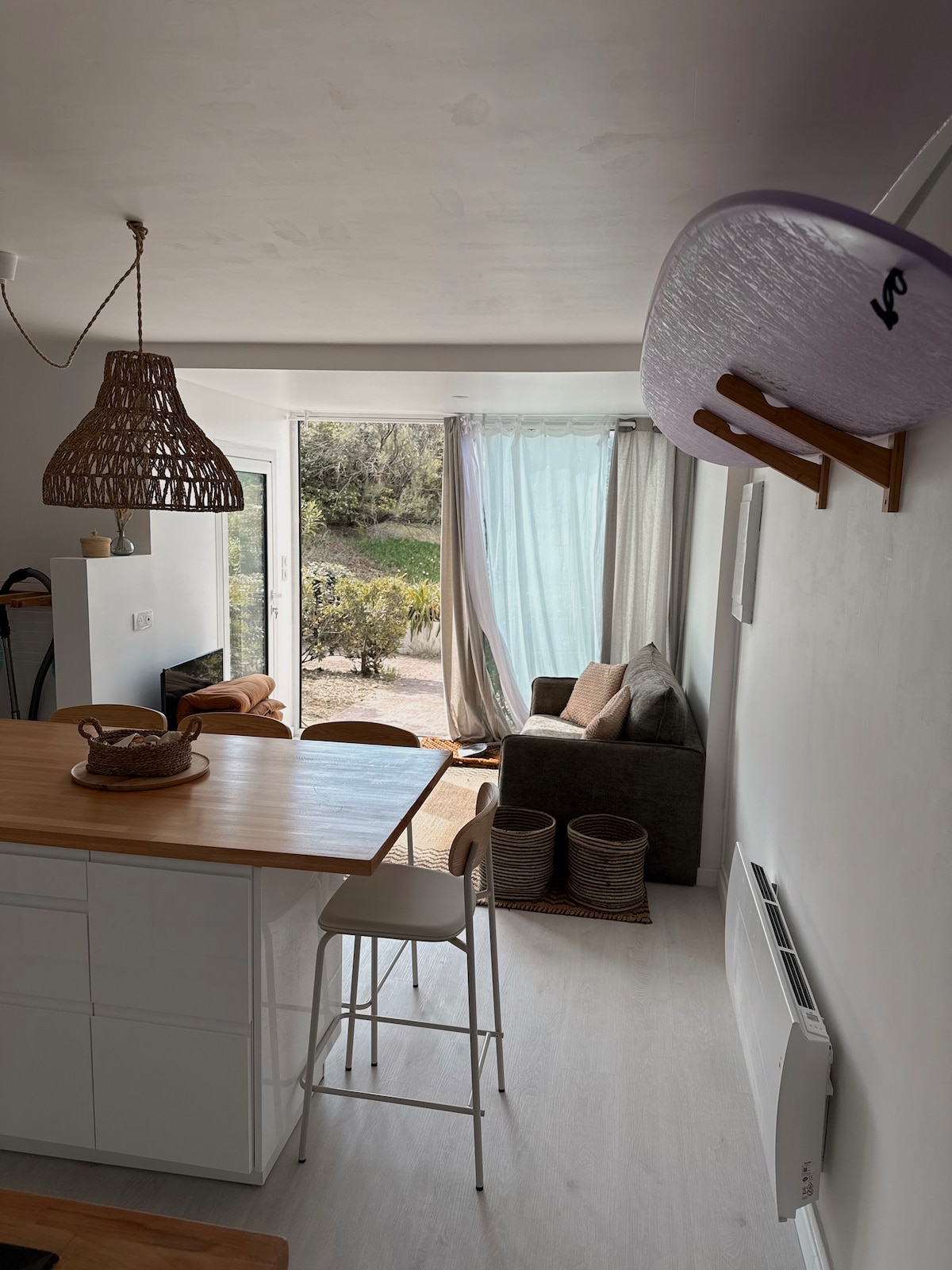 Repensar el espacio de una pequeña zona no es fácil, pero algunos arquitectos hacen maravillas. Un apartamento moderno, orientado al sur y al oeste, completamente reformado con materiales de alta gama. ¡Las sábanas y toallas también están incluidas ! También disfrutarás de una terraza con vistas impresionantes de las montañas del País Vasco y las playas con los mejores lugares para surfear en el mundo. Todo a 5 minutos a pie: estacionamiento, restaurantes, bares, alquiler de surf.