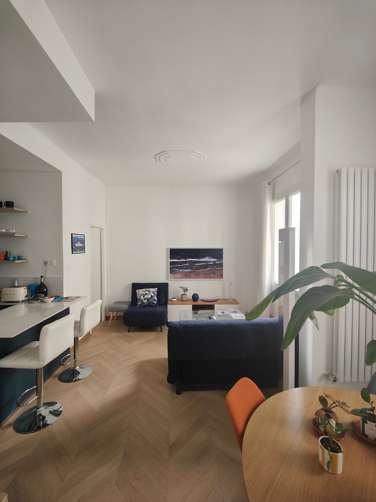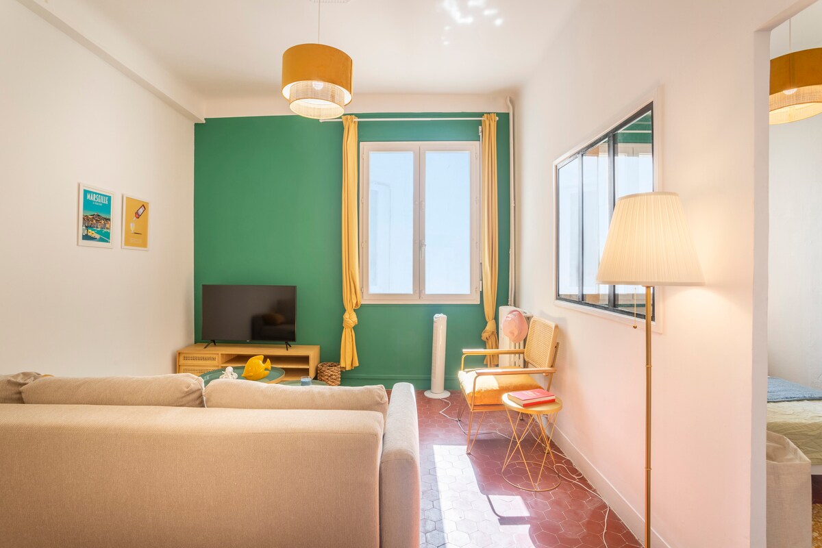 En un edificio típico de Marsella, descubra el encanto de nuestro apartamento a 2 pasos del faro y de la playa de los Catalanes, diseñado para una escapada en familia o con amigos. Hemos decorado nuestro apartamento como un lugar para vivir: más allá de un simple espacio para dormir. Completamente reformado, el apartamento está climatizado. Los gastos de limpieza también incluyen sábanas (las camas están hechas a su llegada), toallas de baño y paños de cocina.