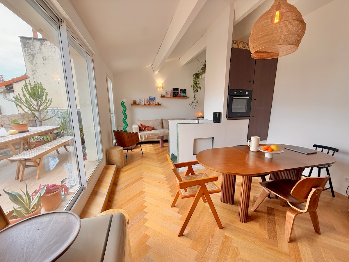 Idealmente situado entre el Puerto Viejo (50 m) y el Cours Estienne d'Orves (50 m), este loft dúplex de 82 m² es el resultado de la rehabilitación del tercer y último piso de una antigua fábrica de jabón. La pátina centenaria del suelo de terracota, el salón catedralicio y las vigas de los antiguos mástiles de galeras transmiten a este lugar totalmente renovado un carácter único de autenticidad. Los diferentes espacios abuhardillados, totalmente abiertos, crean un ambiente cálido, refinado y contemporáneo.