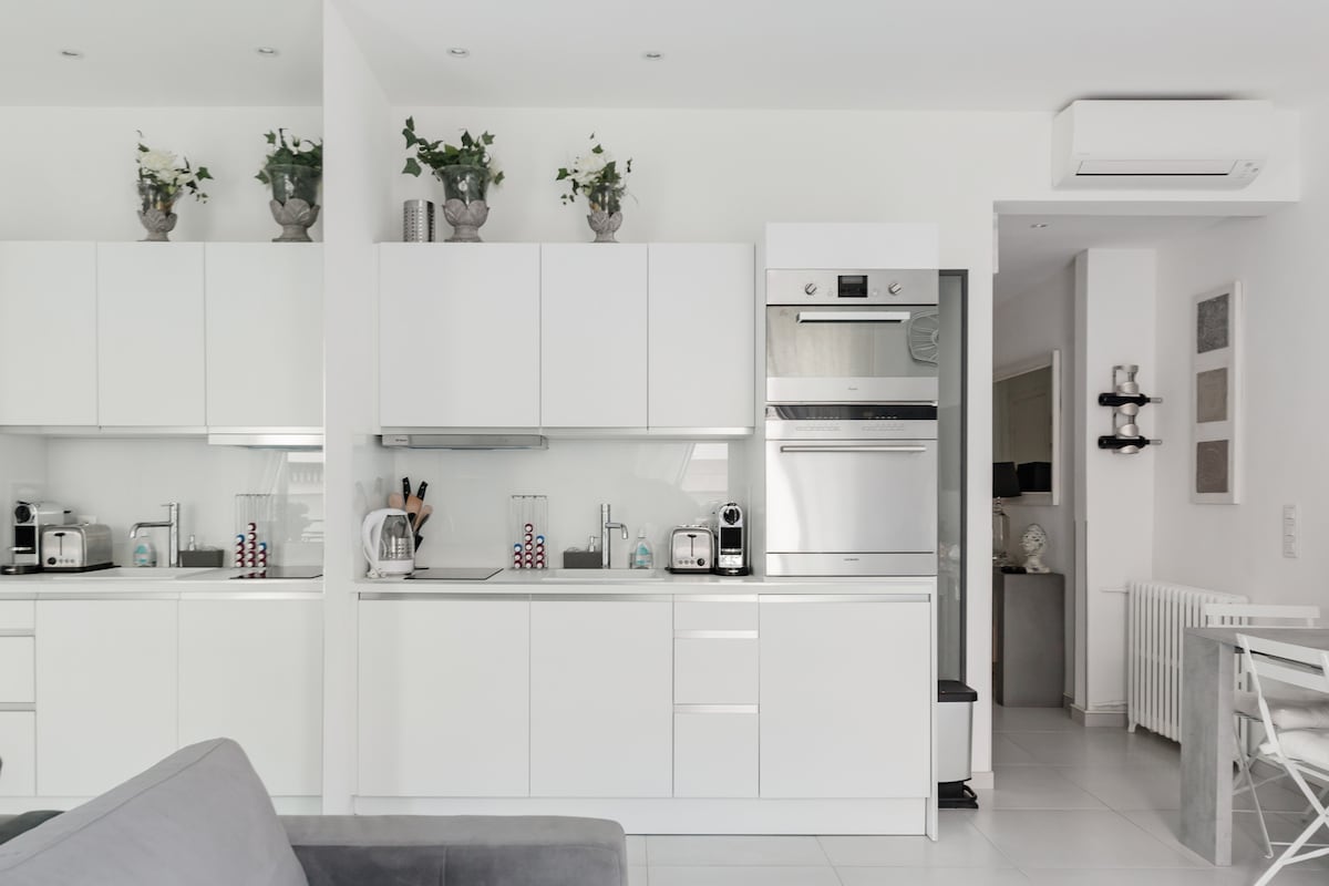 Se alojará en un magnífico apartamento con 87 m2 a dos pasos del centro de Cannes, a 12 minutos a pie de la Croisette y del paseo marítimo. Ideal para 4 personas (1 dormitorio con 2 camas individuales y un sofá cama en una zona para dormir en la sala de estar) y dos baños. Muchas comodidades disponibles: aire acondicionado, internet, máquina Nespresso, lavavajillas, lavadora... Se proporcionan sábanas y toallas. Para obtener más información, lea la descripción detallada aquí-dess