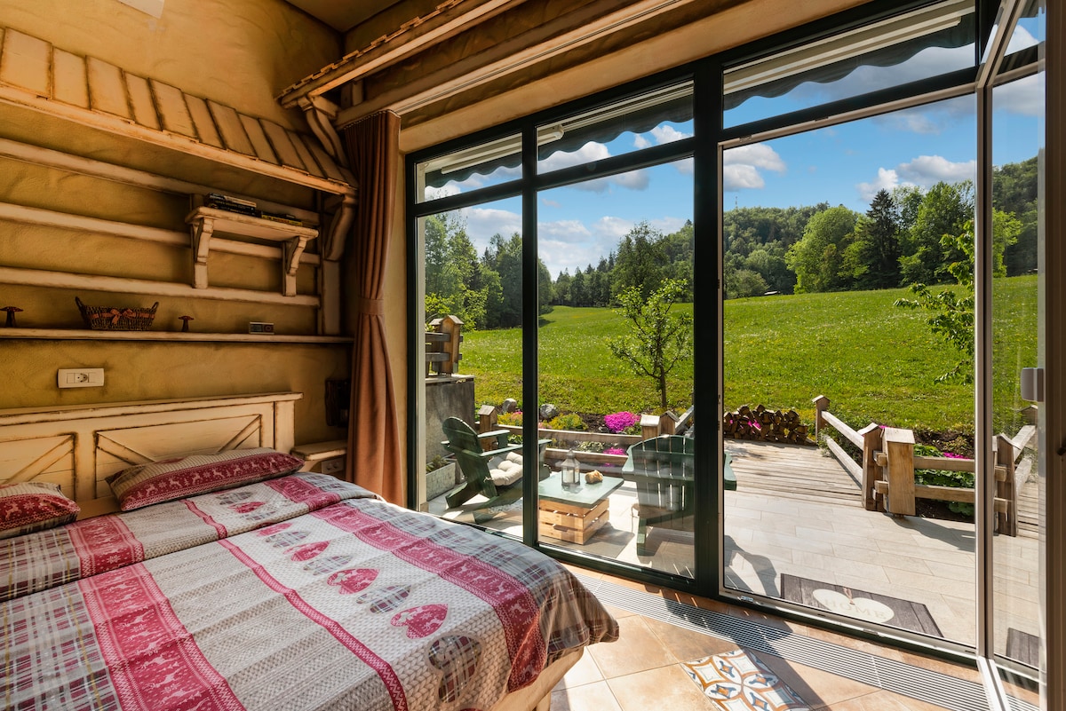 Disfruta de la serenidad de la naturaleza en nuestra pequeña casa única, a solo 20 minutos de Bled. Duerme con el murmullo del río que pasa, toma el sol en nuestra terraza de madera justo a orillas del río y date un chapuzón en la bañera vikinga al aire libre en todas las estaciones. Equipada para cocinar en interiores y exteriores, nuestra encantadora casa es hospitalaria para humanos pequeños y grandes por igual, ¡incluye una sauna modular, playa privada y un cine al aire libre!
