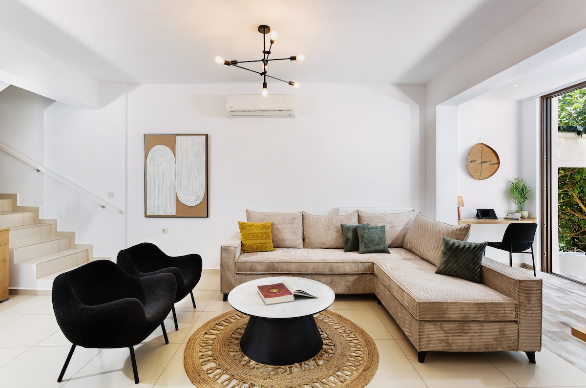 Stay with your whole family or group of friends in this wonderful accommodation and enjoy moments of joy and relaxation. It can host up to eight guests, featuring two bedrooms and two loft-style rooms. Just a 5-minute walk from the beach of Platanias and with easy access to restaurants, cafés, supermarkets, and shops in the heart of the tourist resort of Platanias. Everything you need for your stay is provided—towels, bed linen, shower gel, shampoo, and more.