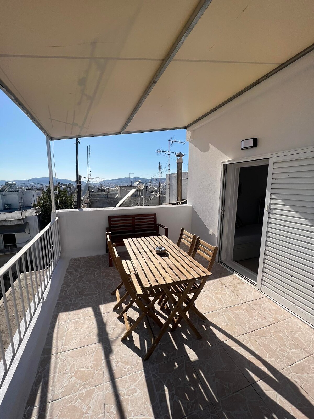 Un estudio muy cómodo y acogedor en el sexto piso de un edificio típico de los años 60... El edificio está ubicado en Fok.Negris,una calle peatonal amplia y verde en la zona de Kypseli. La casa tiene una terraza al sureste con hermosas vistas de Lycabettus y la Acrópolis con una zona de estar al aire libre, toldos y muchas plantas verdes y se encuentra en la parte delantera del edificio. Está totalmente y bien equipado para 1 o 2 personas con un sofá cómodo y anatómico/cama de matrimonio .