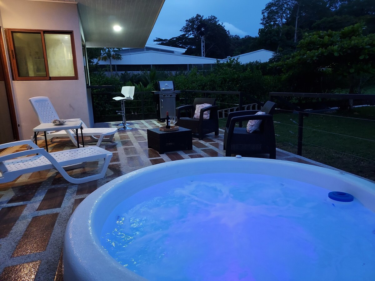 Playa Pita. Fácil acceso en auto regular. 15 min N de Jaco, 5 min N del Hotel Punta Leona. La playa está a 4 minutos caminando. Vistas increíbles. Los guacayos pasan regularmente. Caminatas por la selva en la puerta (monos). Dos terrazas privadas. Aire acondicionado en la habitación principal de doble ocupación y Aire acondicionado en la segunda habitación opcional para los huéspedes #3y4. Varios restaurantes cercanos. Rosanna y su hija viven discretamente en una unidad de cuidador separada, proporcionando seguridad y asesoramiento. * El apagado se encuentra justo ANTES de la gasolinera TROVA *