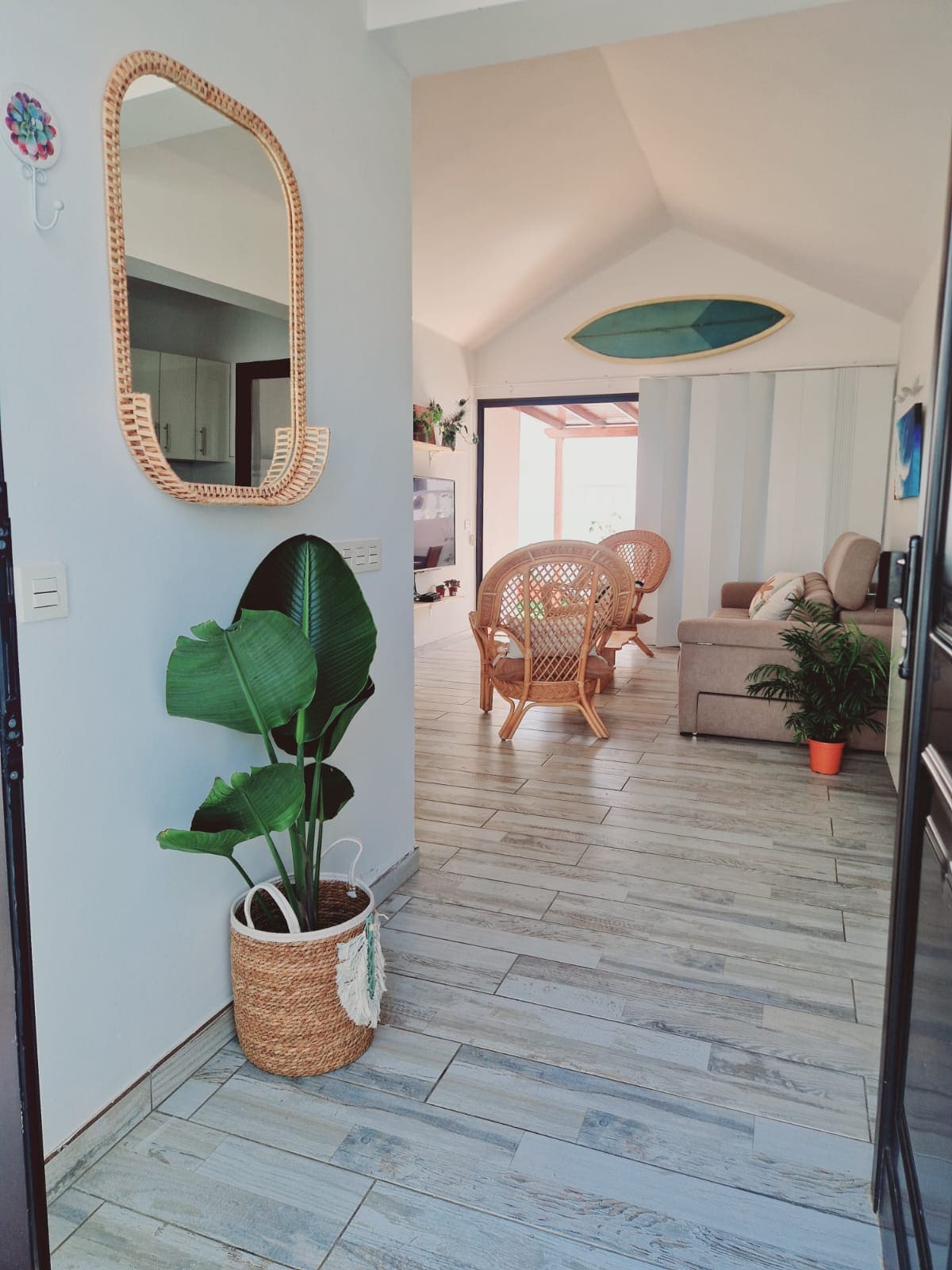 No es solamente un alojamiento de vacaciones lleno de comodidades y servicios, también es un lugar lleno de delicadeza y arte en sus paredes y en sus puertas e incluso en la mesa de comedor exterior diseñada por artistas locales, todo pensado con mucho cariño para que el placer de una vacaciones isleñas sean además, únicas y llenas de placer para los sentidos