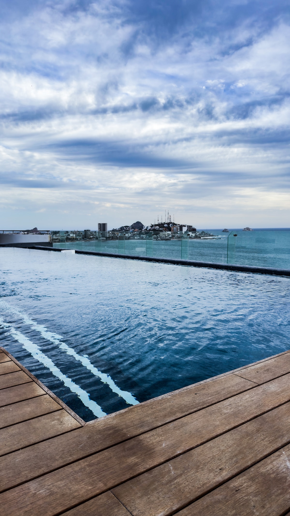Fantástico departamento vista al mar en el Cerro de la Navería, terraza con vista espectacular a Olas Altas, Paseo Claussen, centro histórico y catedral. Cuenta con alberca padrísima en el roof top! Recámara con 1 cama queen size, Closet, pantalla de 40". Comedor para 4 personas. Cocina integral con refrigerador, parrilla eléctrica, vajilla completa. 1 baño completo con agua caliente. En la sala 1 Sofá cama para 2 personas y pantalla de 58", con una vista increíble