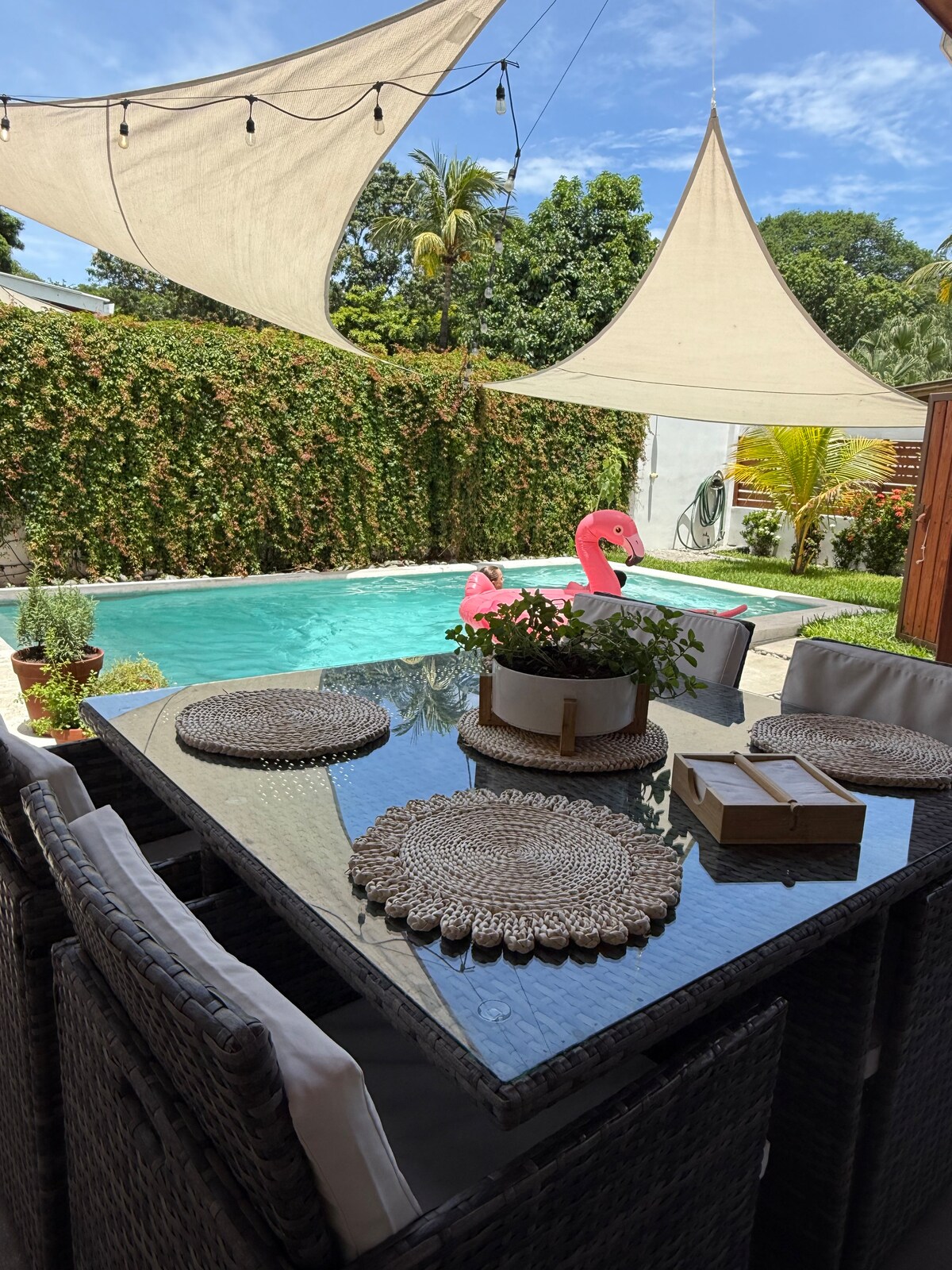 Experience our traditional, unique Salvadoran style Villa, nestled in a centric neighborhood, w/walking distance to El Palmarcito’s beach & saltwater pools. Perfect for Nature Lovers, away from noise while being close to Surf City's main attractions. With a simple yet charming semi-open design, this coastal retreat blends indoor comfort with the soothing presence of nature. Ideal for couples, families, friends, surf trips, or remote work, it offers an authentic cultural escape and relaxed vibes!