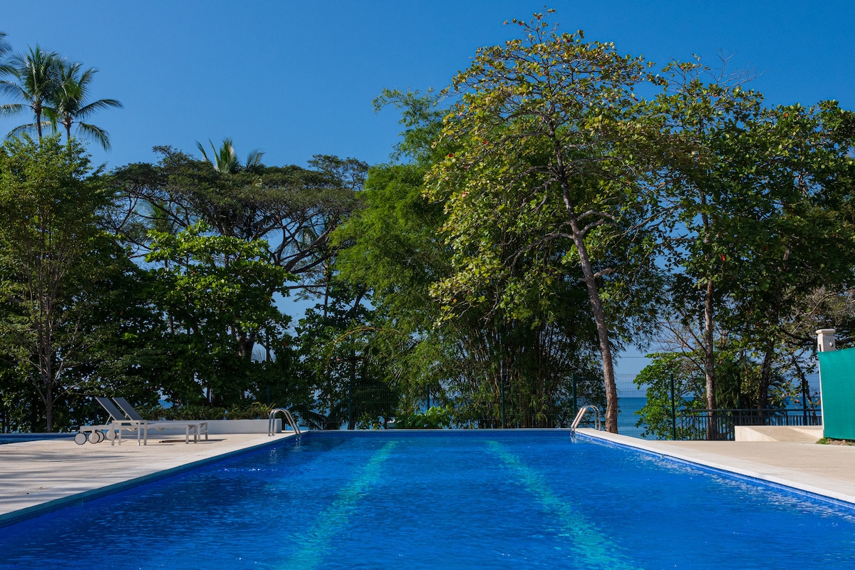 **Reservas solo a través de Airbnb** ¡ Bienvenidos a un oasis tropical! Ubicado entre las arenas brillantes de Playa Mantas, Punta Esmeralda. A solo 2 minutos a pie estarás en la playa, este tesoro escondido ofrece belleza natural. Los bosques exuberantes y las olas ondulantes están alrededor: despierta al sonido de las aves y duerme al sonido de los monos aulladores. De vuelta en tu condominio totalmente equipado, los acabados lujosos y la cocina completa significan comodidad de hogar.