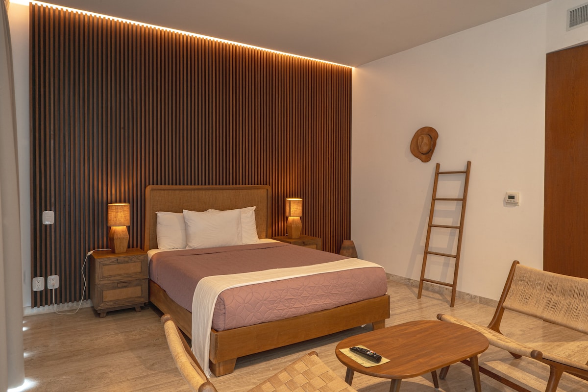 Casa Nómade is a 1600 sq ft / 140 sq mt boho-chic hideaway in La Veleta, tucked in a quiet boutique gated community near vibrant Calle 7. Unwind in your private jungle garden, a refreshing plunge pool with water cascade, and a built-in lounge for shaded afternoons. Inside, spacious areas meet handcrafted indigenous design. Enjoy a king bed, indulgent Yucatán Senses bath products, and high-speed Wi-Fi.