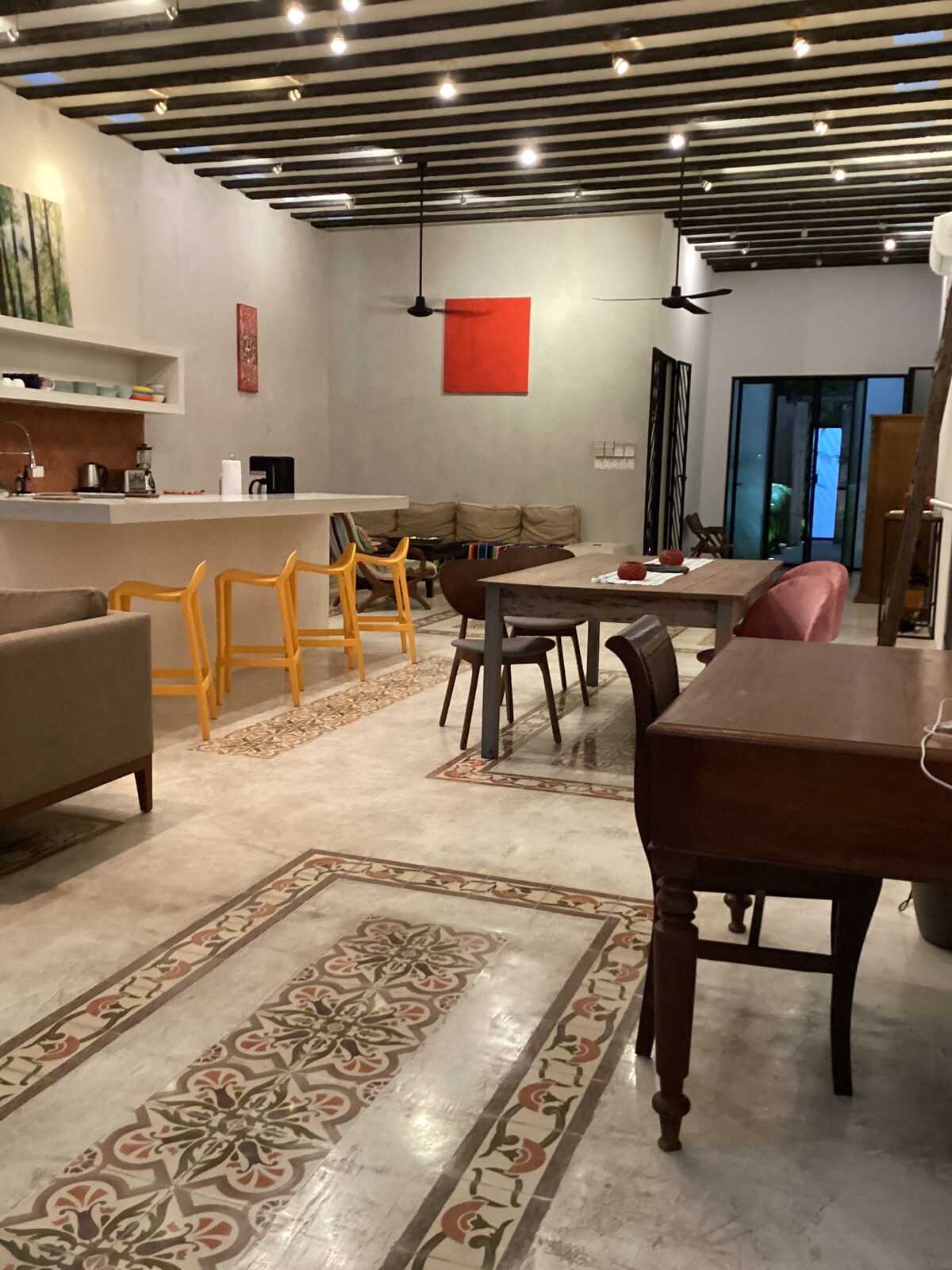 Private home with a great balance of colonial and modern. Perfect for one to two people who enjoy indoor/outdoor living. The house has amazing airflow with 16 foot ceilings throughout and an air conditioned bedroom. The patio and private dipping pool make the house a perfect refuge from the hustle and bustle of downtown. Only 1 block away from La Plancha Park, Merida’s new “Central Park” and 2 blocks from the start of Calle 47 Ruta de Gastronomia, the newly pedestrinized restaurant district.