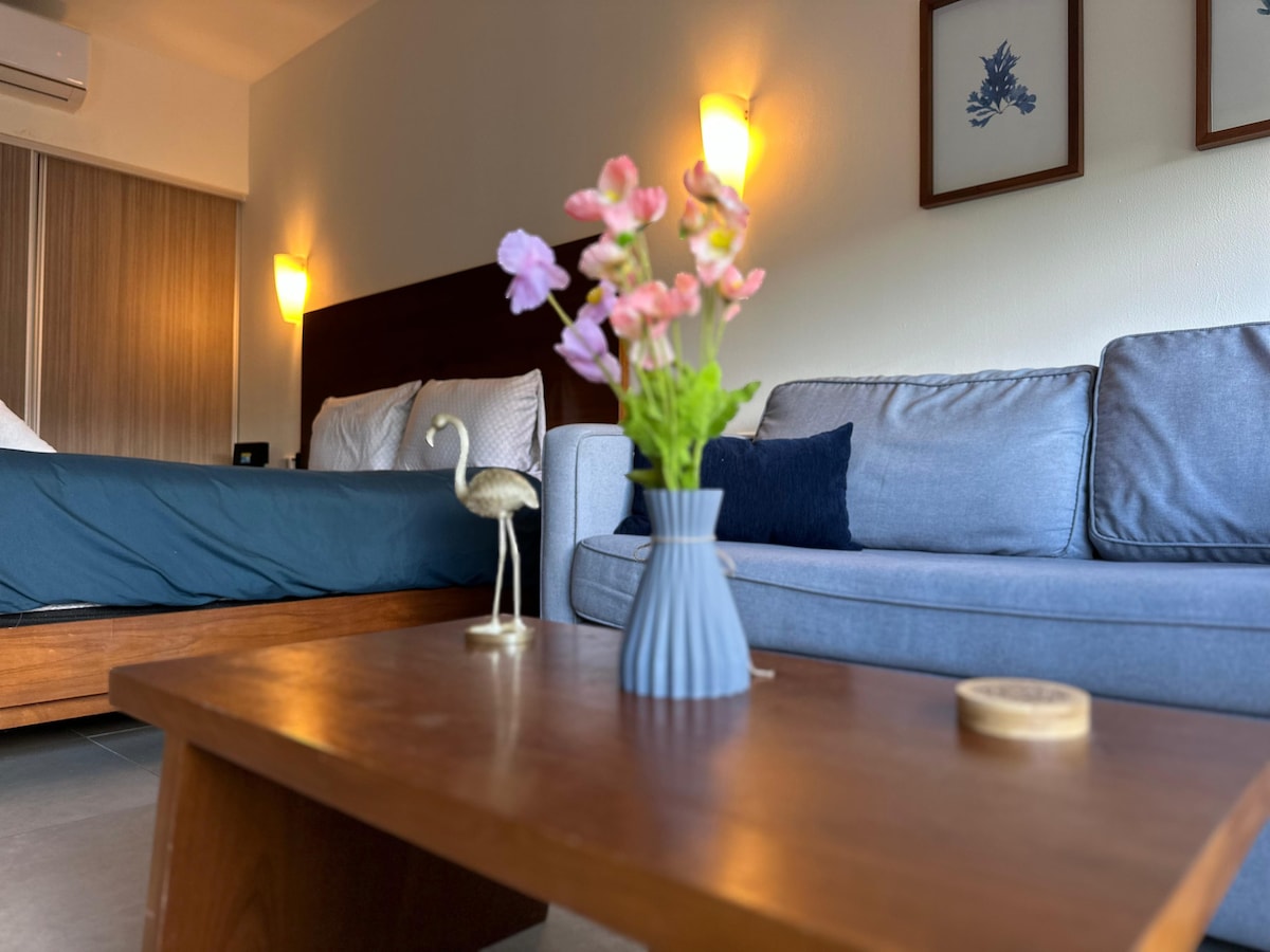 Departamento totalmente adecuado para que nuestros invitados puedan disfrutar una experiencia local en una de las zonas más populares de Playa del Carmen, estando a solo pasos de sus mágicas playas y de todo lo que la zona centro y 5ta Av. ofrecen. Pensamos en cada detalle para satisfacer las necesidades de todo tipo de viajero. Ya sea que vengas de vacaciones y/o trabajo nuestro lugar es para ti.
