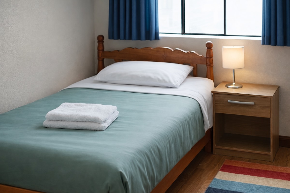 Amplia y confortable habitación matrimonial con cama extra, ideal para familias o amigos. Ubicada en un barrio tranquilo, con detalles únicos que garantizan una estancia placentera. Disfruta de un ambiente acogedor, anfitriones de primera. Perfecta combinación de comodidad y precio accesible para que descanses sin preocupaciones. Reserva ahora y vive una experiencia de hospitalidad excepcional.