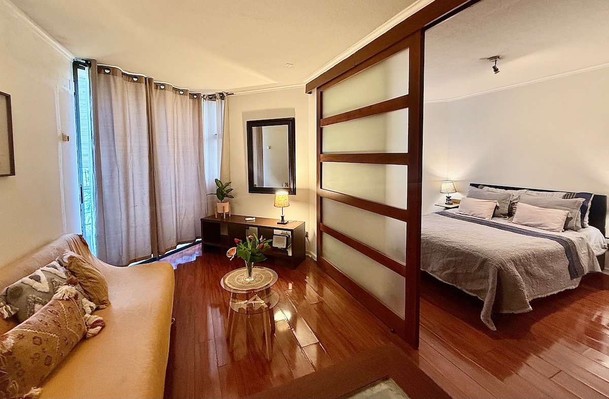 Moderno y acogedor departamento con aire acondicionado en el corazón de Santiago. A pasos del metro y del Centro Histórico, rodeado de museos, mercados y restaurantes. Cama king, cocina equipada, balcón y wifi rápido, ideal para viajes o estadías largas. Edificio seguro con conserje 24/7. Atención personalizada, check-in flexible y recomendaciones locales para que disfrutes la ciudad como un residente, con comodidad y tranquilidad.