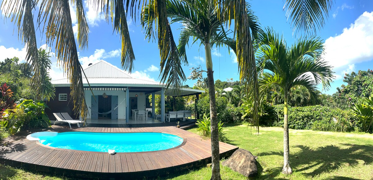 Situada en las alturas de Deshaies , con vistas al mar Caribe, la isla de Montserrat y la isla de Kawan, esta casa independiente se encuentra en medio de un parque de 3 hectáreas rico en especies locales (parque botánico en una parcela total de 5 hectáreas). Este entorno encantador y atemporal se encuentra a solo 5 minutos en coche de la magnífica playa Grande Anse de Deshaies y la playa Pearl. El alojamiento incluye 2 dormitorios con aire acondicionado, una sala de estar-cocina y un baño (wc y ducha)