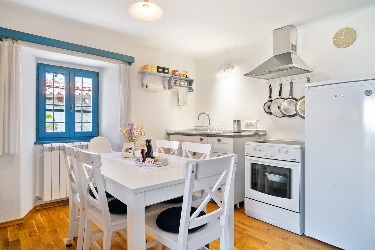 Welcome to a fully equipped, authentic Karst stone house. The apartment for 6 adults with a private terrace is located on the first floor, the host lives on the ground floor of the same house. In warmer months, the private terrace is a perfect spot to relax in the fresh air. Guests can also use the barbecue in the courtyard and have fun playing darts. Free public parking is available about 150 metres from the house. You're invited to experience true Karst hospitality and the peace of nature.
