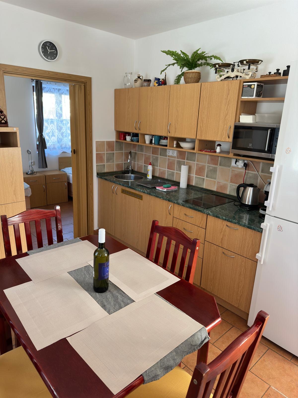 El apartamento está en la planta baja de una casa unifamiliar de una granja catalogada, en un patio común con la residencia del propietario. Tiene dos dormitorios dobles, uno con comedor, un baño con inodoro, lavabo y ducha. La cocina independiente tiene una entrada desde el patio. Está equipado con nevera, microondas, hervidor de agua, cocina doble eléctrica con horno, tostadora, utensilios de cocina, té, café, asientos al aire libre. Todas las habitaciones tienen entradas desde el patio. Adecuado para estancias de corta duración de mayo a septiembre.