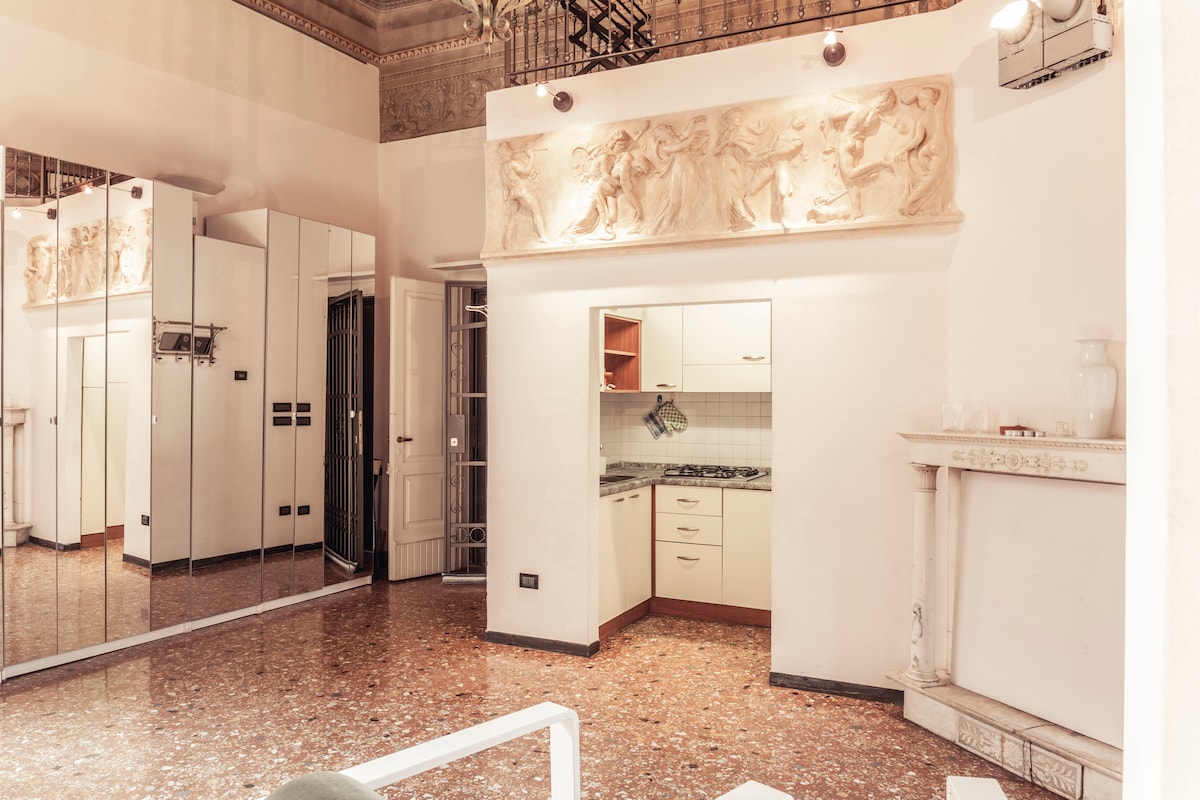 Encantador loft en el corazón de la ciudad de Bolonia con maravillosas vistas a la Piazza Santo Stefano (Basílica de las Siete Iglesias). Un lugar tranquilo y exclusivo donde los muebles modernos e históricos se combinan en un encantador ESPACIO ABIERTO. El loft tiene toda la comodidad y el lujo. Está a 5 minutos a pie de la Piazza Maggiore, la plaza principal, a 2 minutos de las Dos Torres y de muchos bares y restaurantes. Está dentro de una zona de tráfico restringido (ZTL) y en una zona peatonal.