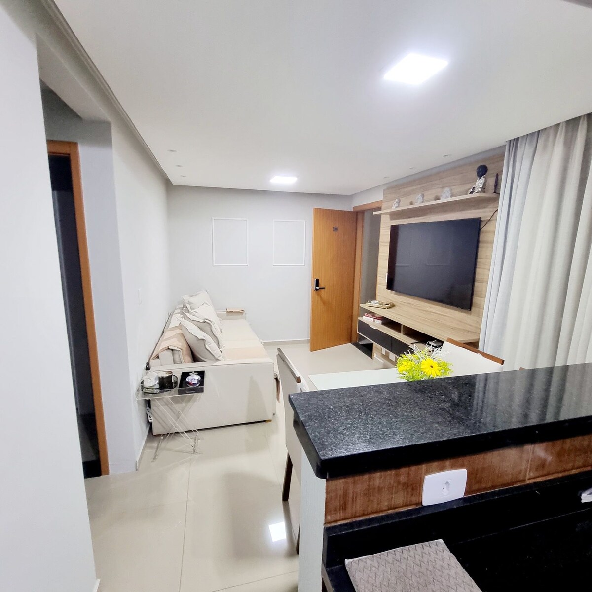 Faça Check-in e Check-out sozinho com cofre , e fechadura digital. no coração de Poá ! Espaço aconchegante, calmo perfeito para quem busca conforto e praticidade. Localização privilegiada, no centro da cidade e a 8 min da estação. Conta com 1 quarto com duas camas de solteiro "juntando fica cama de casal" e 1 sofá-cama de casal. Oferecemos enxoval para todos hospedes. Ideal para famílias, amigos ou viajantes a serviço. panificadora pão nosso a 5 min de a pé, há 10 min restaurante Cabral