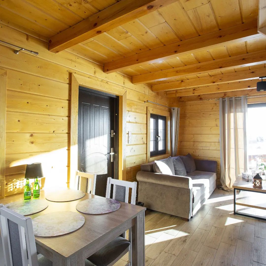 I offer a holiday and recreation cottage for rent, located on exclusive property in Krzywe, Masuria, 100 meters from a lake. The fenced area will allow your dog to run freely throughout the day. The property is a year-round modular cottage, situated on a 700m² plot surrounded by fields and meadows. The idyllic surroundings guarantee a peaceful and quiet stay. The heating system ensures a comfortable stay even in winter. The property is located 20 km from Ełk and 35 km from Augustów.