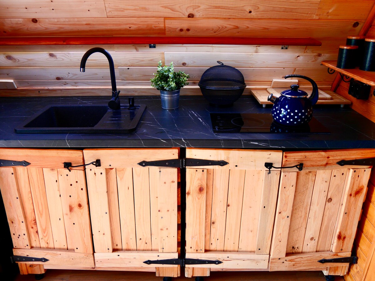 Mi pequeña casa de campo de madera ( 30 m2) , en medio del campo, es particularmente adecuada para familias con niños ( a partir de 5 años, debido a las escaleras algo empinadas hasta el piso superior). Está totalmente equipado con TV de 55 pulgadas, nevera, 2 placas calefactoras, microondas con función de parrilla y muchos platos. Para el uso de bicicletas, sauna y jacuzzi, espero una pequeña donación de entretenimiento. Vivo en el anexo y te ayudaré. Hablo polaco y alemán