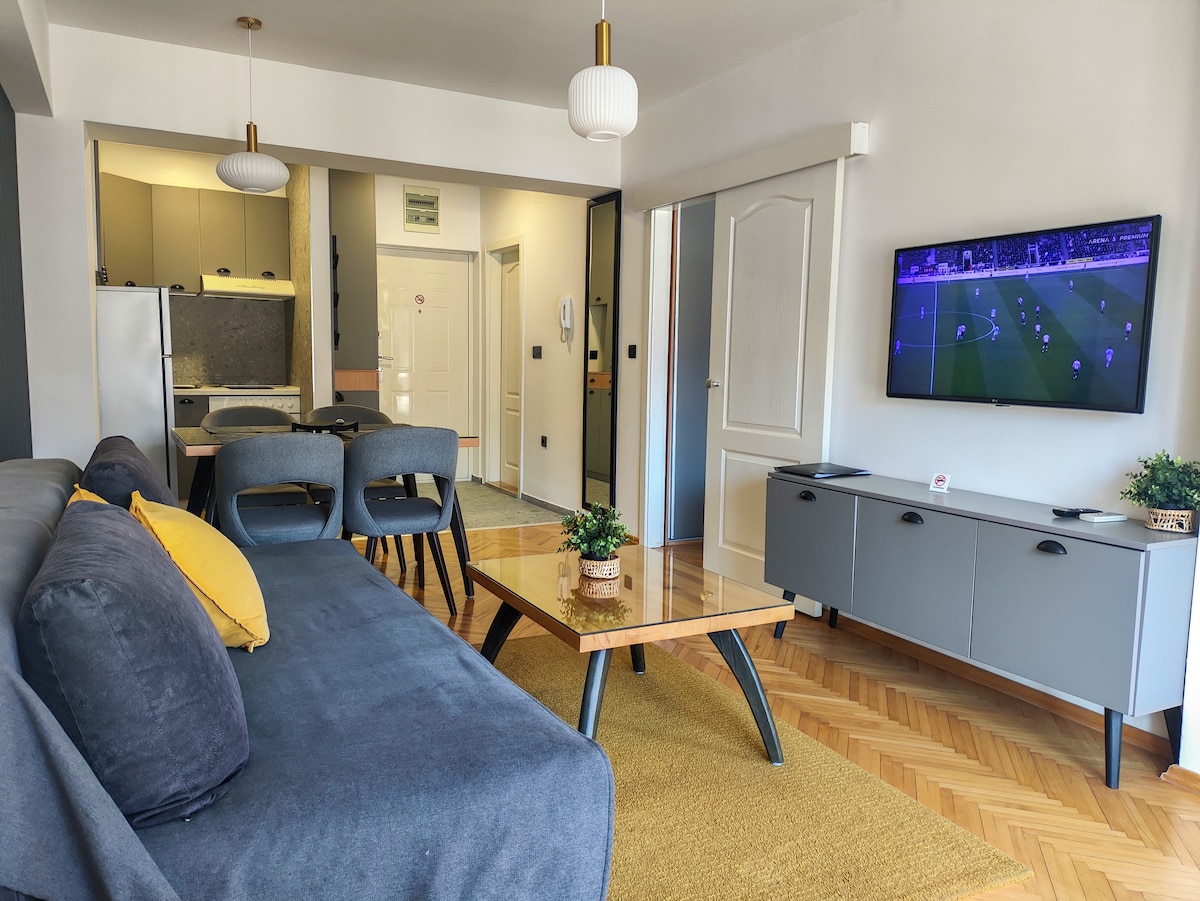 Ubicación perfecta. Diseño moderno. Nuevo apartamento. Estacionamiento GRATUITO incluido en el precio. Este es un nuevo apartamento acogedor donde puedes disfrutar de tus vacaciones. Ubicado en el corazón de Ohrid, a nuestro alrededor está básicamente todo lo que describimos en nuestra sección "vecindario". El lago Ohrid está a unos 100 metros y la playa de la ciudad más cercana está a 10 minutos a pie. La estación central de autobuses está situada a 10 minutos en auto y el Aeropuerto Internacional de Ohrid está a 15 minutos en auto.