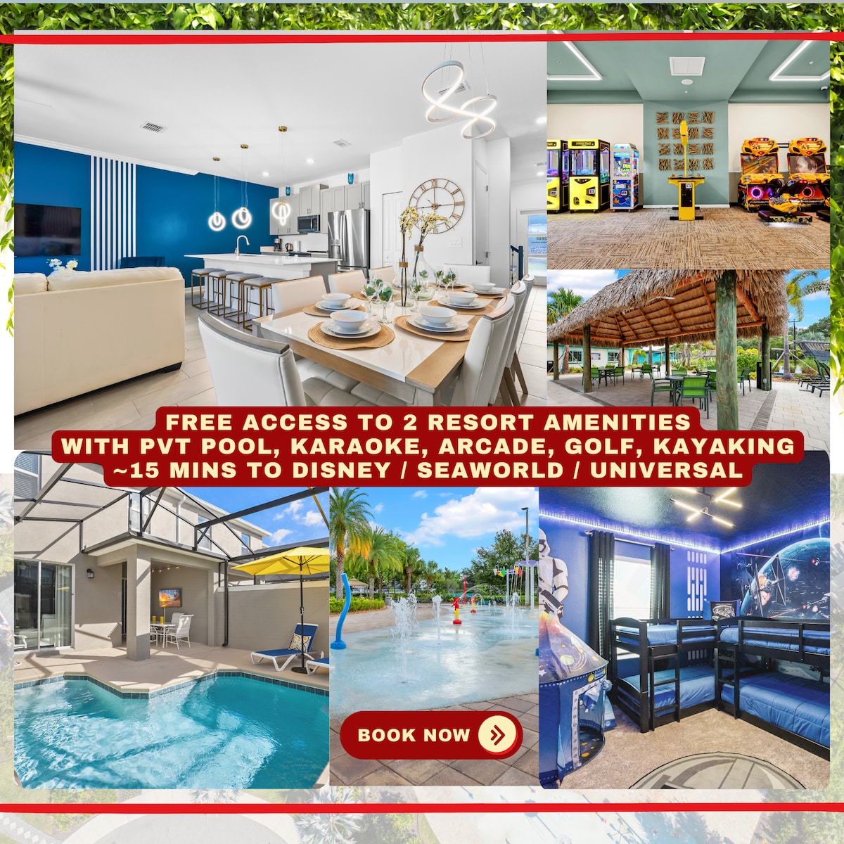 Disney 4 millas *LazyRiver Club* Piscina privada*4B/3B