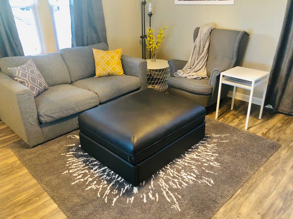 Una granja urbana totalmente amueblada de tres dormitorios y un baño que incluye lo siguiente: - Camas tamaño queen - Cafetera - Toallas - Platos y utensilios de cocina - Refrigerador -Microondas - Televisor de pantalla plana grande. -Internet inalámbrico de alta velocidad - Entrada con cerradura inteligente - Estacionamiento cubierto. - Lavadora y secadora. Nueva remodelación en toda la unidad. Todo nuevo, fresco y limpio.