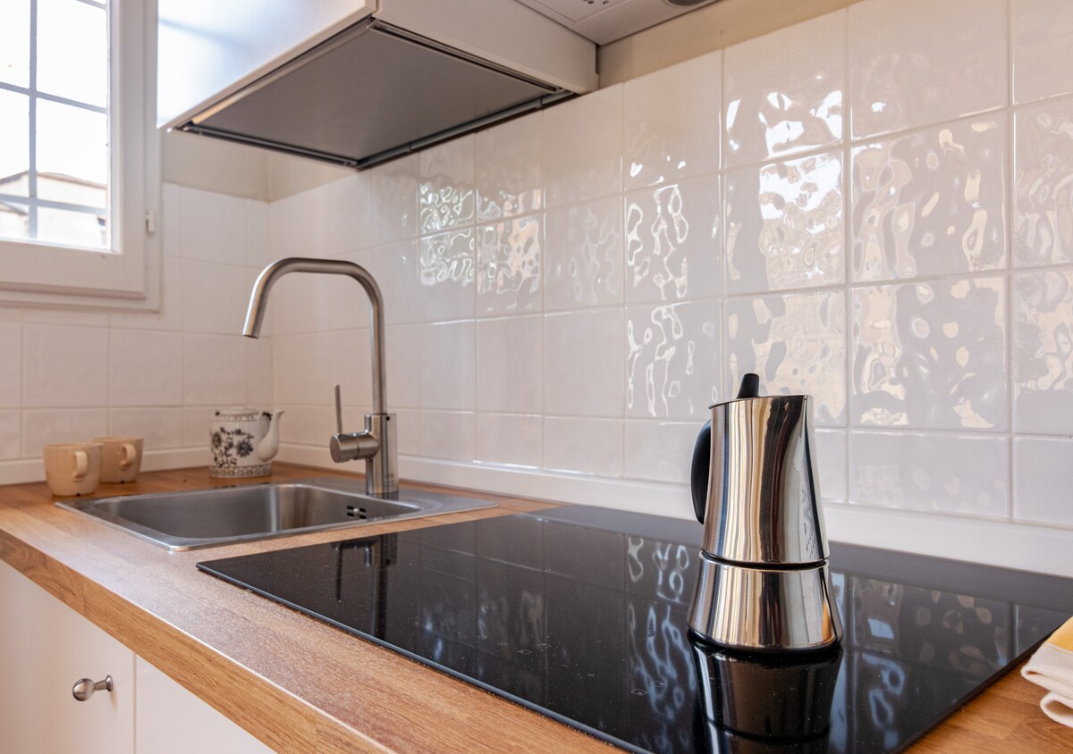 Este es un acogedor apartamento de un dormitorio en un solo nivel, ideal para familias. Cuenta con una sala de estar con un sofá cama doble, una pequeña cocina con una silla alta para niños, un dormitorio con una cama doble y un sillón cama adicional. Cuenta con un baño único con ducha y un patio privado. En tonos verdes, con muebles suaves y tejidos naturales, en lo que respecta a su historicidad, el antiguo techo artesanal de madera del siglo XVIII se ha conservado en la sala de estar.