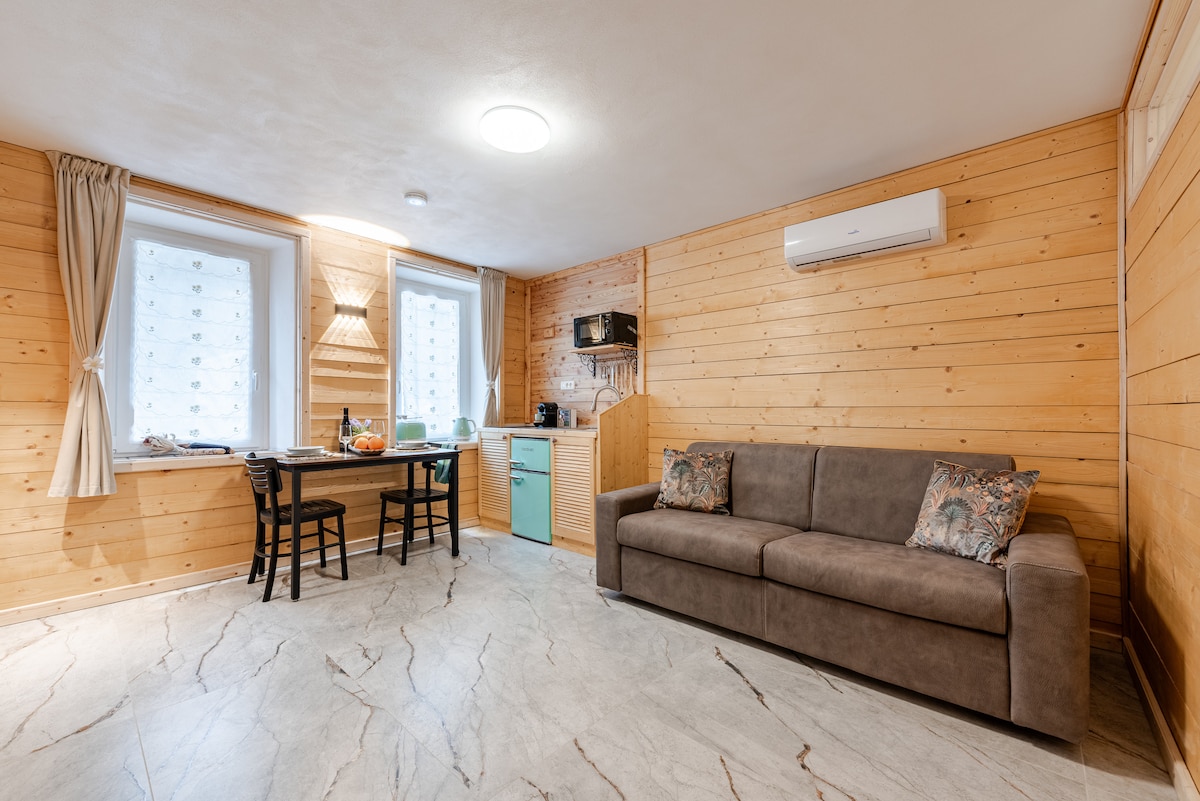 Welcome to your cozy & stylish apartment in Bovec, nestled in the heart of the stunning Soča Valley. Surrounded by majestic mountains and unspoiled nature, this thoughtfully designed space offers modern comfort and practical touches. Relax in the bright living area, cook in the fully equipped kitchen, unwind in the comfortable bedroom, and enjoy the incredible views from the terrace or living room. It's the perfect base for exploring Bovec's adventures and the valley's unparalleled beauty.