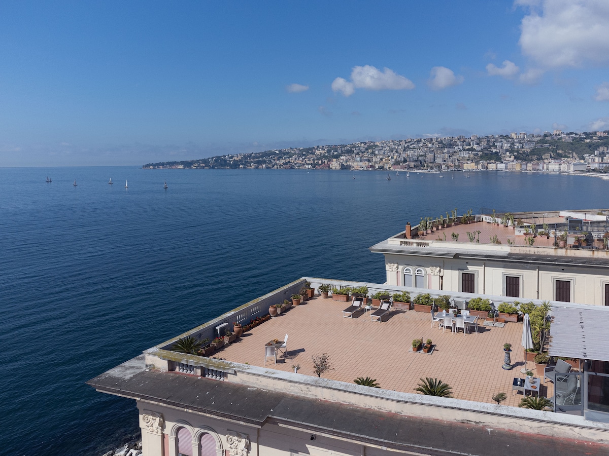Impresionante estudio plano con vistas al mar y 2 terrazas en Chiaia