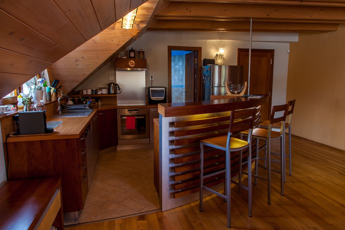Apartamento loft Tatraview house se encuentra en High Tatras, en Velka Lomnica. La ventaja del alojamiento es la ubicación céntrica. La misma distancia de unos 8 km es de High Tatras - Tatranská Lomnica, Kežmarok y Poprad. El alojamiento proporciona la máxima privacidad en un apartamento separado con su propia cocina totalmente equipada y dormitorio separado en el ático, desde donde hay una hermosa vista de las vistas de los Altos Tatras. Incluye baño privado WIFI y TV.