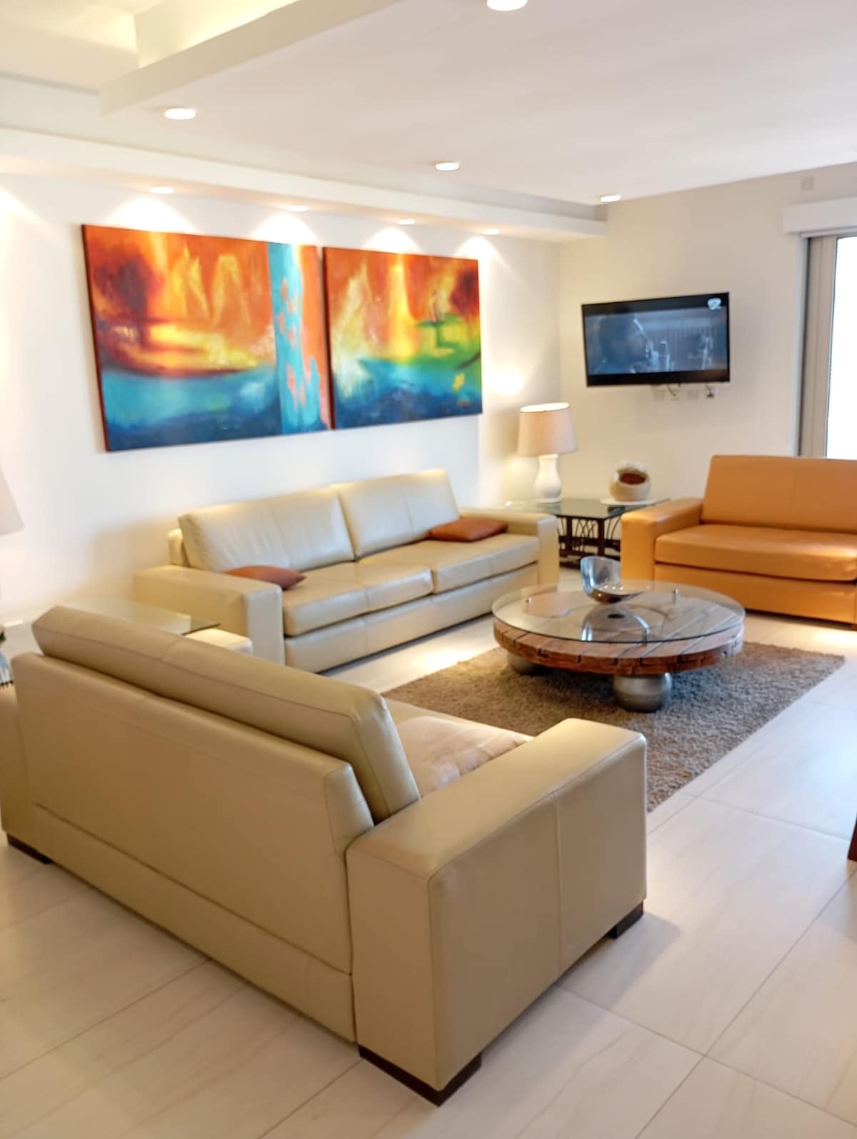 ✨ Un espacio diseñado para su confort y descanso. Ubicado en una zona segura y tranquila, este departamento combina modernidad, comodidad y tecnología para brindarle una experiencia única. Perfecto para viajeros de negocios, parejas o familias pequeñas, el alojamiento ofrece WiFi de alta velocidad, aire acondicionado y entretenimiento premium, además de acceso a una piscina, gimnasio y parqueo gratuito. 📌 ¡Disfrute de una estancia inolvidable con todas las comodidades que merece!
