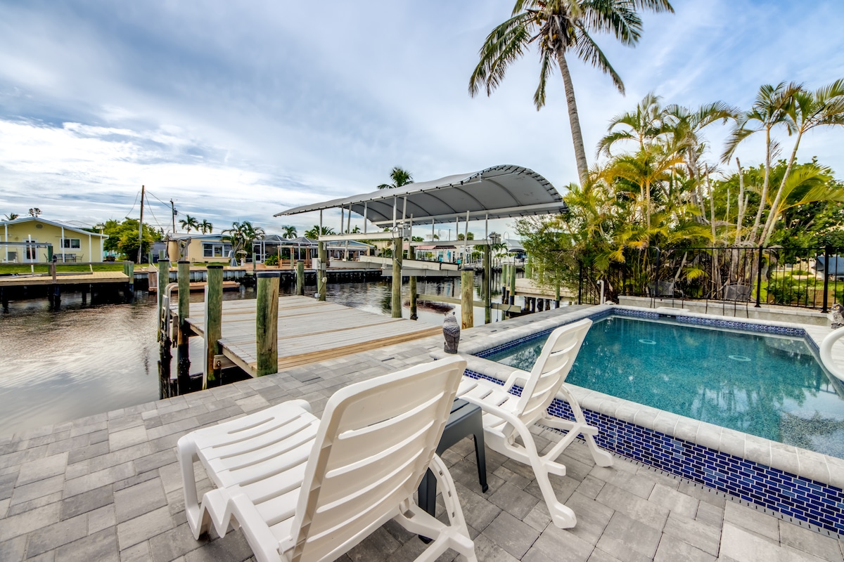 Actualización: en septiembre de 2022 nos vimos afectados por el huracán Ian. Tuvimos poco más de 5 pies de inundación en nuestra preciada casa de campo. Hemos trabajado incansablemente para volver a armar todo. Todos los azulejos, paredes, electricidad, iluminación, muebles son nuevos, ¡e incluso mejoramos el baño! Amplia casa tropical con vistas al agua desde nuestro lanai del patio trasero. Muelle de barcos con estación de limpieza de pescado, barbacoa, hermosas puestas de sol con peces saltando en nuestro canal. Nueva cocina grande y a una manzana de galerías de arte, restaurantes y bares.