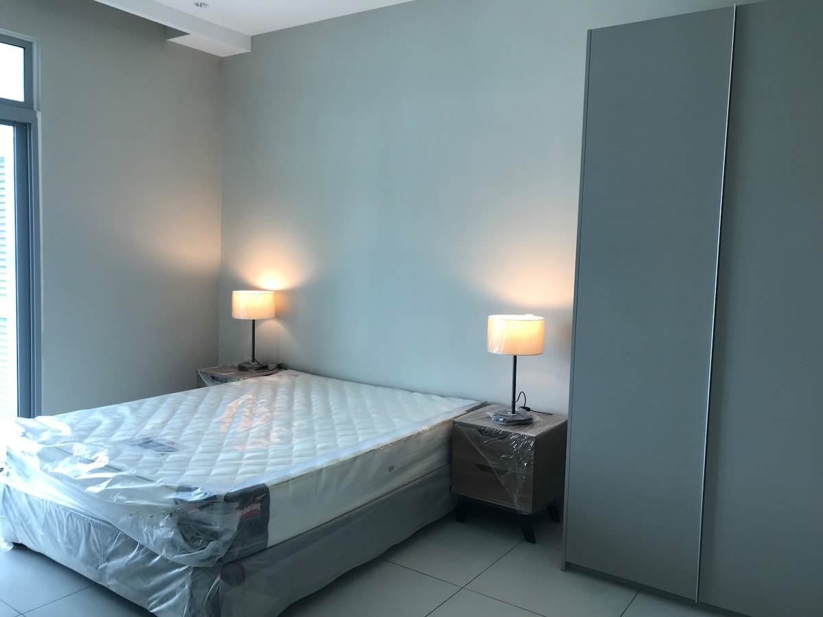 - Concepto minimalista moderno - Amplio 1000 pies cuadrados. - Totalmente amoblado - Aire acondicionado completo y ventilador de techo - 2 dormitorios y 2 aseos - 2 colchones individuales plegables - Manta y almohada adicionales - Wifi de alta velocidad y Netflix - Televisor inteligente grande - Toalla incluida - Se proporcionan Telekung y Sejadah - Balcón para café2 con hermoso minijardín. - 2 plazas de aparcamiento gratuitas - Seguridad las 24 horas con vigilancia - Situado en el corazón del santuario ecológico - Cerca de centros comerciales, tiendas de comestibles, gasolineras y variedad de restaurantes locales.