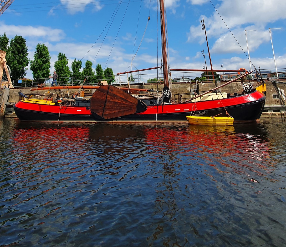 Aventuras, estilo de navegación y nostalgia: Me hospedé en un holandés Barco de piso plano de 1904. Estás buscando un alojamiento, no está en ningún otro lugar en Hamburgo? Te encantan los barcos viejos, has ¿No te importa si se está balanceando y se lleva bien en un espacio pequeño? Entonces JONATHAN podría ser perfecto para ti. Dos cabañas, una cocina, una sala de estar, un baño pequeño y fino. Dos familias pueden alojarse aquí bien. O siete amigos. Y si sois dos, no podría ser más romántico.
