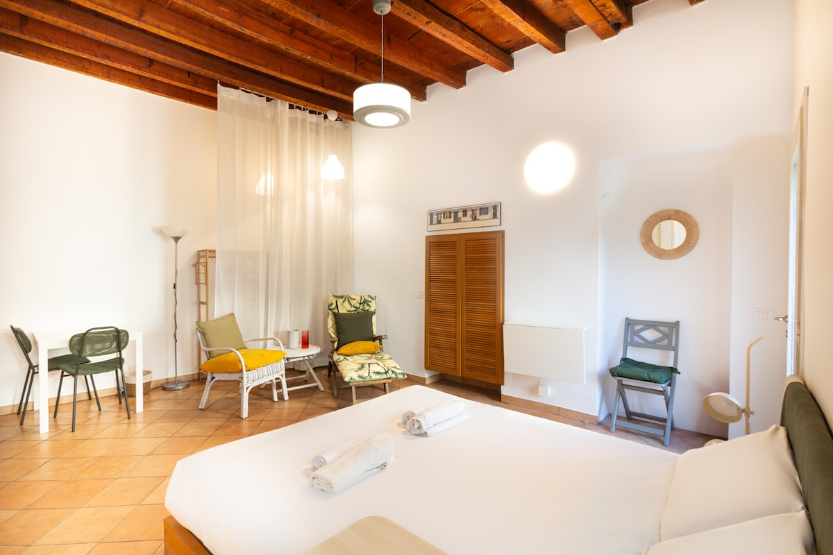 A stylish, bright loft ideal for travelling people, professionals/remote workers and leisure guests alike. 60 sqm with exposed beams and private terrace. Very fast Wi-Fi 1 Gbps fiber, large table desk, comfortable workspace, AC and modern comforts. Situated in a trendy, cosmopolitan area, full of Art Nouveau architecture, independent cafés, design bars, and international restaurants. Just a few minutes walk from Corso Buenos Aires, one of the longest shopping streets in Europe.