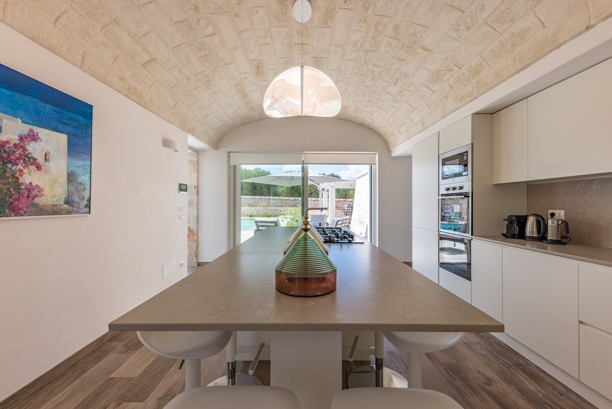 Esta villa y trullo de 1780, llamado trullo Fedele Bonotto, han sido completamente restaurados, pero aún se encuentran entre los olivos centenarios de la zona. Admira las históricas paredes de piedra, relájate en la piscina privada y el solárium, y disfruta de la hermosa zona del jardín, todo exclusivo para los huéspedes y su privacidad. El personal que se encarga de la limpieza de los espacios externos e internos de la propiedad sigue estrictamente las normas sanitarias previstas para la COVID-19. Antes de la llegada de cada huésped, se lleva a cabo un saneamiento completo. El tamaño de la casa y el gran jardín garantizan absolutamente las distancias de seguridad social y sin contacto. La villa, con olivos centenarios, tiene un comedor y una cocina totalmente equipada con utensilios y vajilla, lavavajillas, nevera y horno. Gracias a un pasillo se llega a los dos dormitorios dobles, cada uno con su propio baño. Separado de la villa, con entrada independiente, se accede al trullo, de unos 50 m2 de superficie, donde hay una cama doble, un sofá cama doble y un baño privado. En la zona exterior hay una gran mesa con 10 sillas, varios asientos, una barbacoa y la piscina para uso exclusivo de los huéspedes. También está unido a la villa el cuarto de la caldera con lavandería, completo con lavadora. ¡Toda la estructura es para uso exclusivo de los huéspedes que pueden vivir en estos momentos inolvidables de descanso y tranquilidad! Los huéspedes tienen el uso exclusivo de toda la villa y del trullo adjunto, y de toda la zona al aire libre, que incluye la sala de estar, la piscina y la lavandería. Inmersa en la impresionante campiña, la casa está situada cerca del centro de Ceglie Messapica. Cena en excepcionales restaurantes de propiedad familiar, navega por los mercados locales y da un paseo a pie o en bicicleta por los valles. Tienes un aparcamiento para tu coche, en 20 minutos llegas a las playas del mar Adriático, en 30 minutos puedes llegar a las playas del mar Jónico.