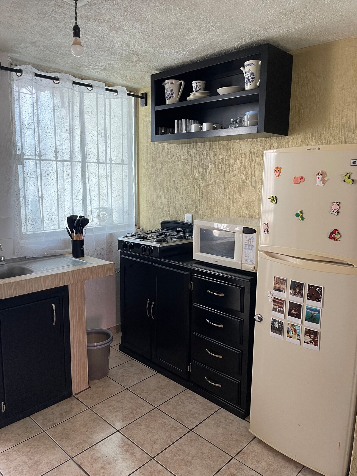 En este departamento podrás tener tu automóvil bajo las escaleras, disfrutar de la comodidad de sus habitaciones y la frescura del sistema de aire acondicionado, te invito un café ese corre por nuestra cuenta, podrás utilizar un escritorio que puse para que puedas trabajar si es que es tu motivo de viaje, nuestra cocina integral está lista para ayudarte a preparar tu desayuno y comenzar bien tu día. ¡Te va a encantar!