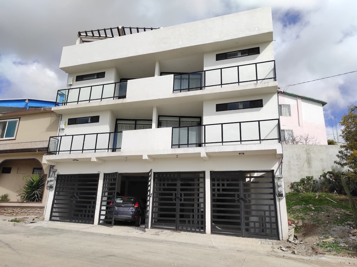 Disfruta la comodidad de este alojamiento Nuevo, tranquilo y muy céntrico. Estupenda vista y magnifica ubicación a solo 5 minutos de la frontera México-USA. A tan solo unas calles de la vibrante Av.Revolución. A pocos pasos de restaurantes, vida nocturna y consultorios médicos. Cuenta con 1 recámara (1 cama Queen + colchón inflable), 1 Tv 50” con aplicaciones: HBO, Netflix, MLB. Utensilios de cocina, lavadora, secadora y plancha para ropa, secadora de cabello. Parking gratuito con seguridad 24/7