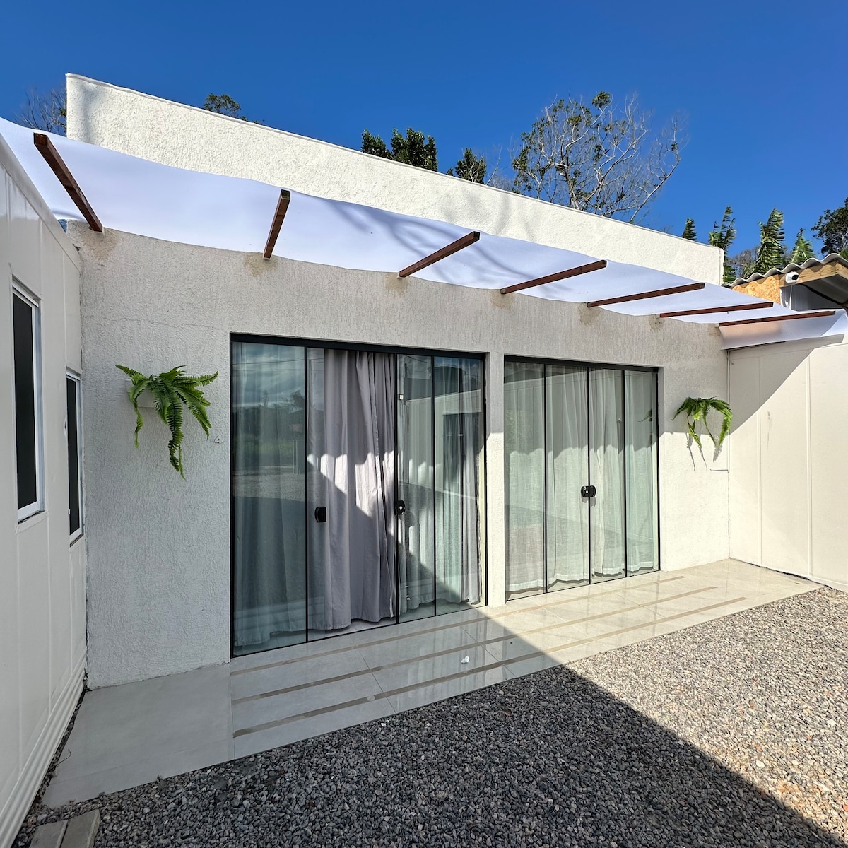 ¡Bienvenido a la suite Casa Blu, un alojamiento moderno y acogedor en Mariscal, Santa Catarina! Nuestra propiedad, construida en contenedores, ofrece una estadía única y confortable para aquellos que buscan relajarse. La suite, ideal para parejas, está equipada con una cama tamaño queen, aire acondicionado, Smart TV, Wi-Fi de alta velocidad y minibar. Ofrecemos ropa de cama de calidad y toallas de baño para su conveniencia. También tendrás acceso a una cocina compartida totalmente equipada.